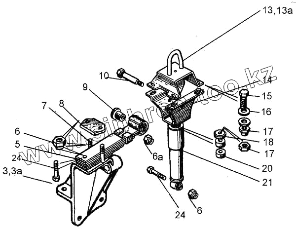 Каталог запасных частей к технике: Камский автозавод 6540. Установка задней подвески кабины