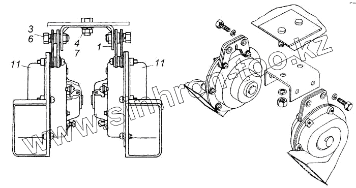 Каталог запасных частей к технике: Камский автозавод 6540. Установка звуковых электрических сигналов