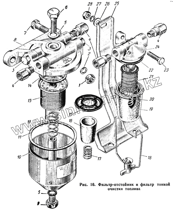 Каталог запасных частей к технике: КАЗ 608. Фильтр отстойник и фильтр тонкой очистки топлива