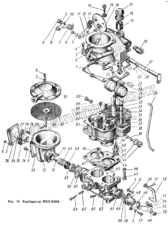 Каталог запасных частей к технике: КАЗ 608. Карбюратор МКЗ-К88А