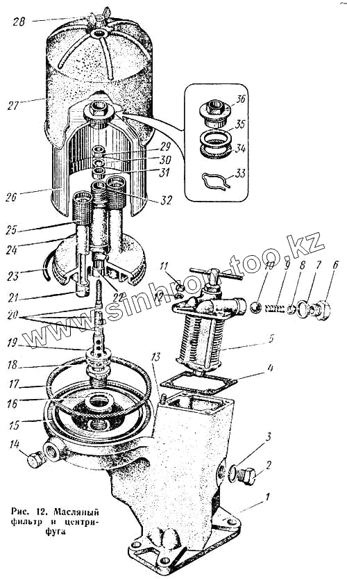 Каталог запасных частей к технике: КАЗ 608. Масляный фильтр и центрифуга