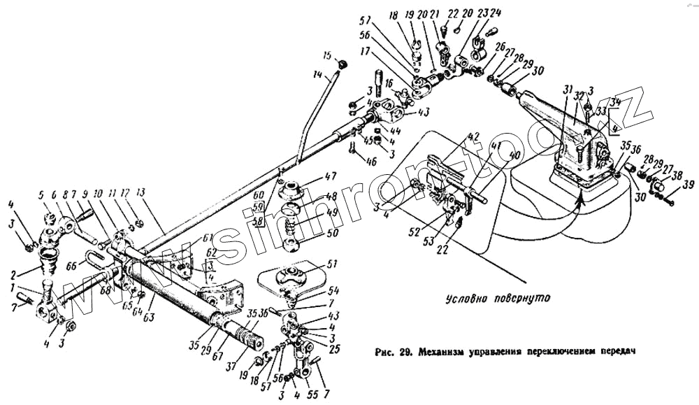 Каталог запасных частей к технике: КАЗ 608. Механизм управления переключения передач
