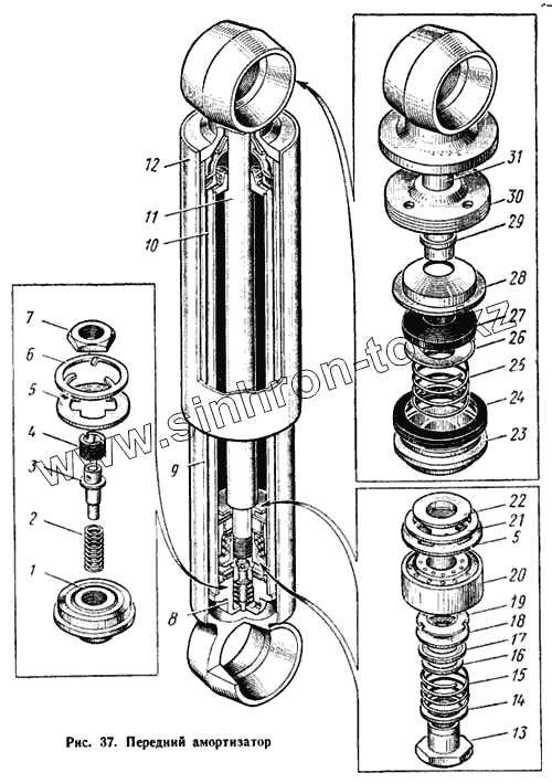 Каталог запасных частей к технике: КАЗ 608. Передний амортизатор