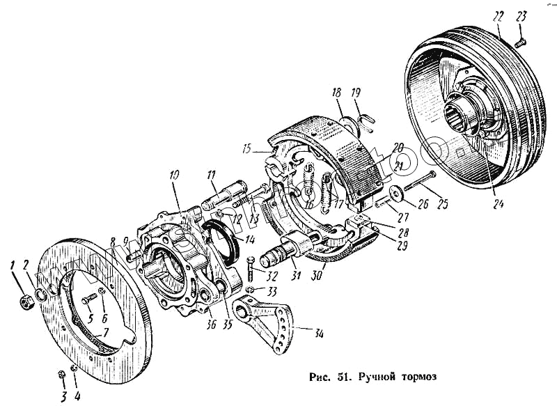 Каталог запасных частей к технике: КАЗ 608. Ручной тормоз