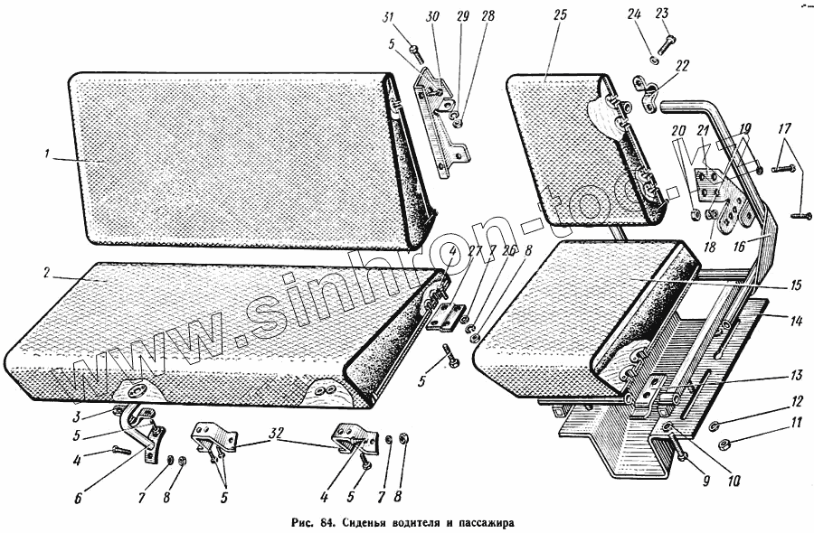Каталог запасных частей к технике: КАЗ 608. Сиденья водителя и пассажира