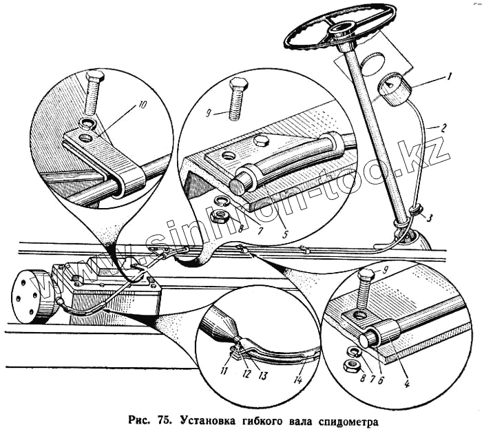 Каталог запасных частей к технике: КАЗ 608. Установка гибкого вала спидометра