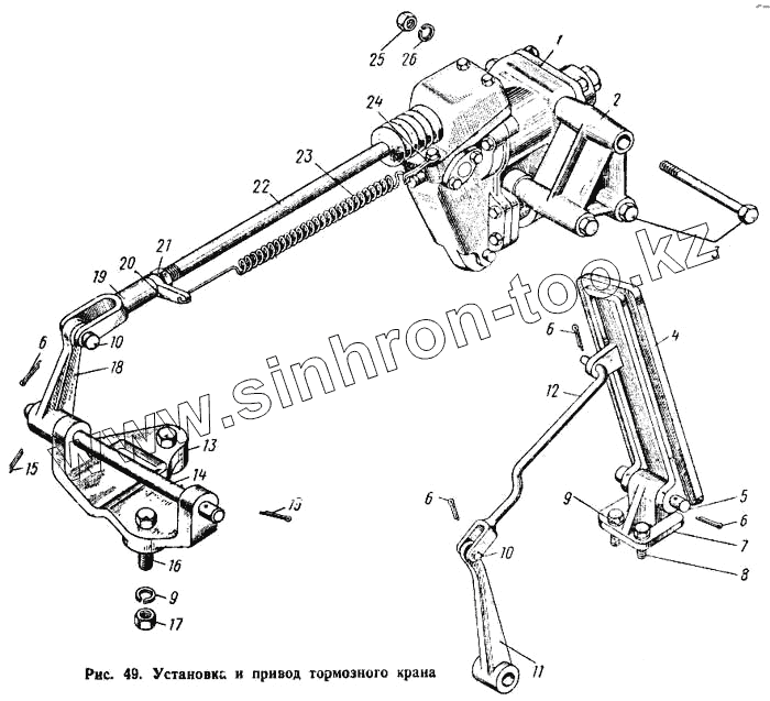 Каталог запасных частей к технике: КАЗ 608. Установка и привод тормозного крана