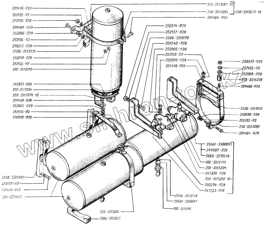 Каталог запасных частей к технике: КрАЗ-250. Баллоны воздушные