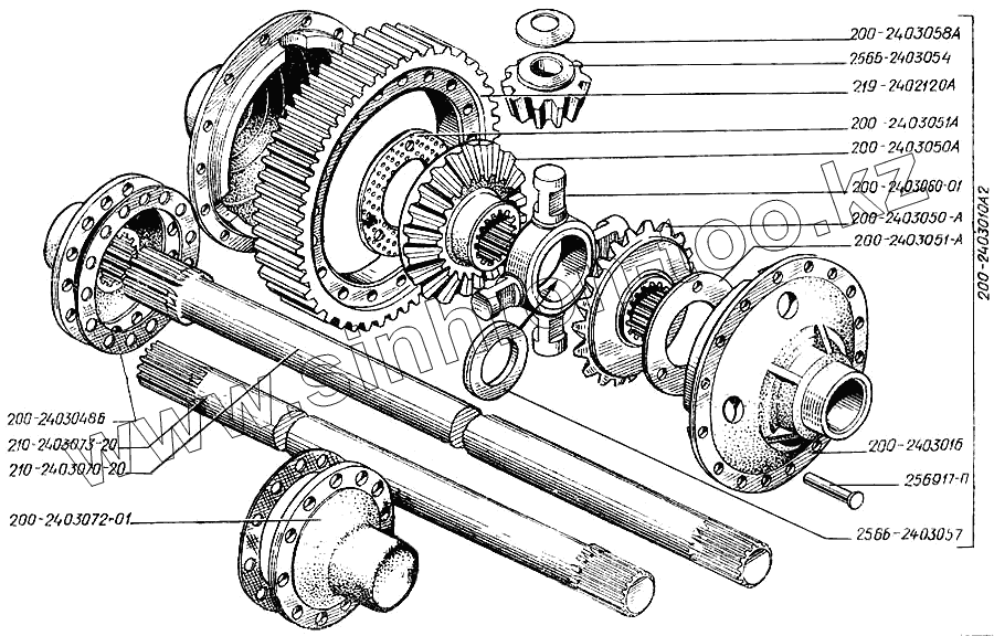 Каталог запасных частей к технике: КрАЗ-250. Дифференциал и полуоси заднего (промежуточного) моста