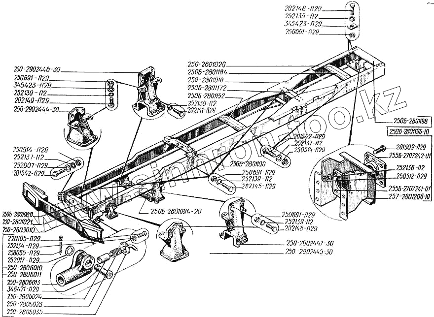 | 250Б-2801080 | 250Б-2801080 | Поперечина № 1 рамы | |