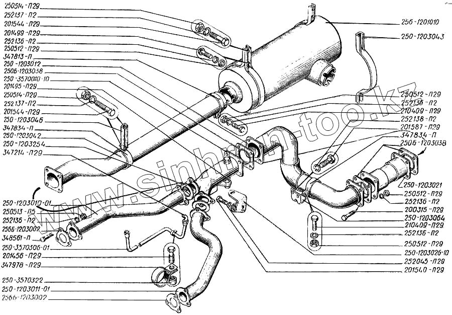 Каталог запасных частей к технике: КрАЗ-250. Система выпуска газов