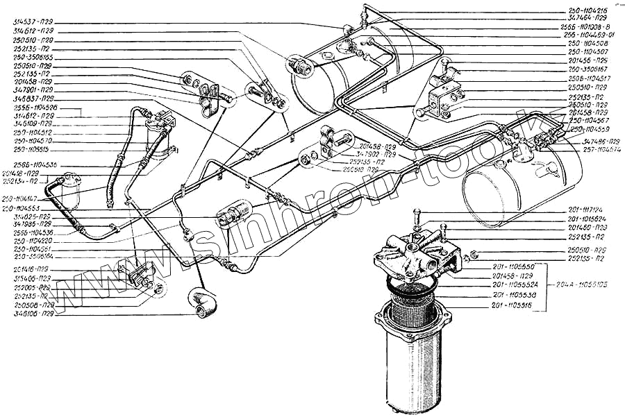 Каталог запасных частей к технике: КрАЗ-250. Топливопроводы