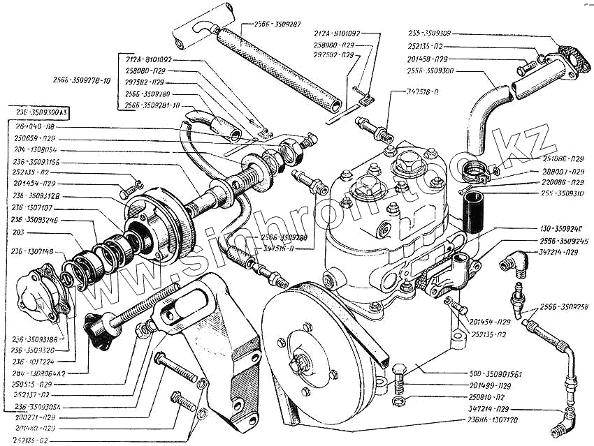 Каталог запасных частей к технике: КрАЗ-250. Установка и привод компрессора