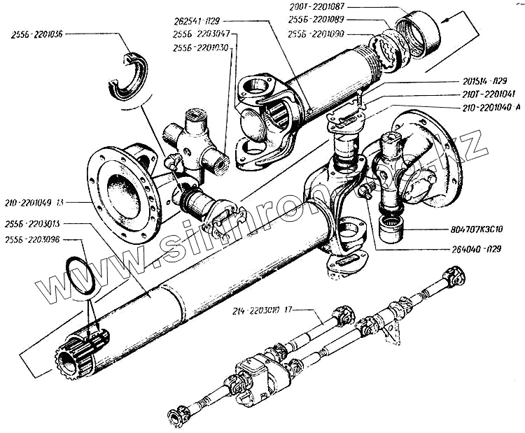 Каталог запасных частей к технике: КрАЗ-250. Вал карданный привода промежуточного моста