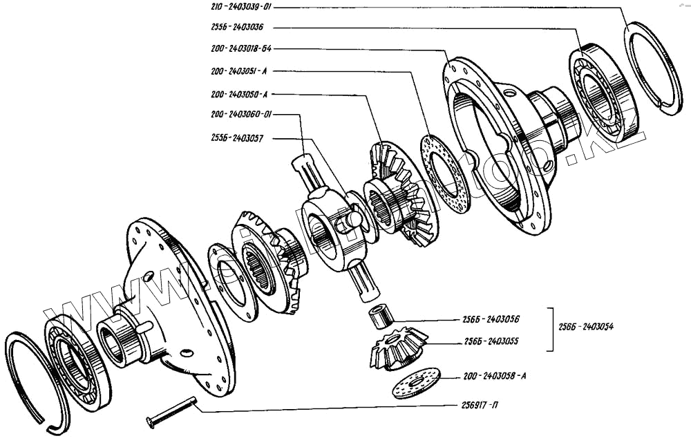 Каталог запасных частей к технике: КрАЗ-255. Дифференциал переднего моста