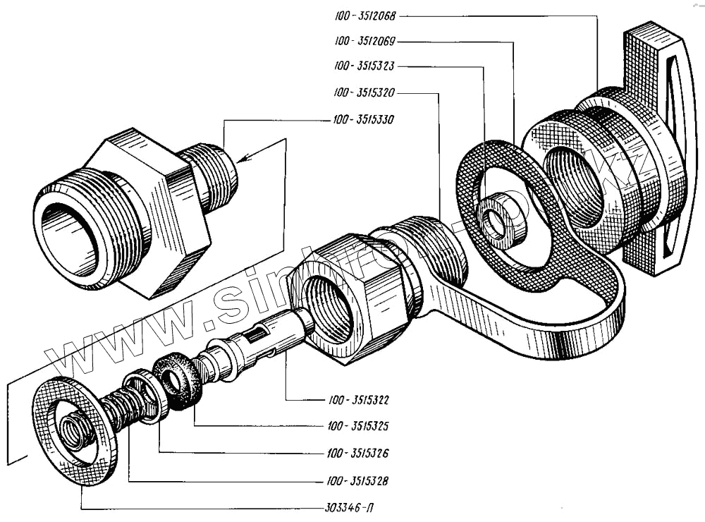 Каталог запасных частей к технике: КрАЗ-255. Клапан контрольного вывода