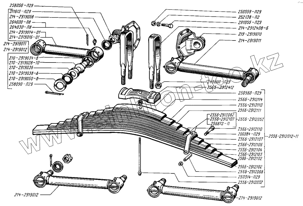 Каталог запасных частей к технике: КрАЗ-255. Рессоры задние и штанги реактивные