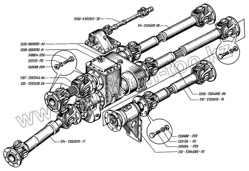 Каталог запасных частей к технике: КрАЗ-255. Валы карданные в сборе