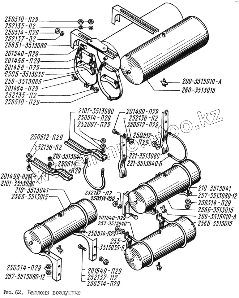 Каталог запасных частей к технике: КрАЗ-256. Баллоны воздушные