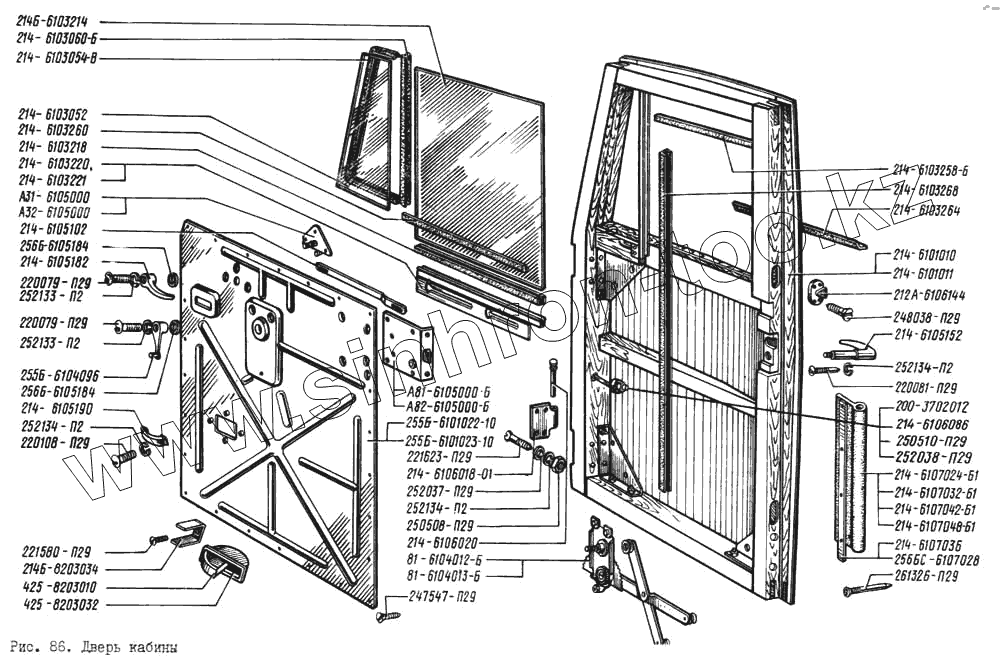 Каталог запасных частей к технике: КрАЗ-256. Дверь кабины