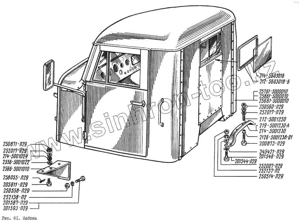 Каталог запасных частей к технике: КрАЗ-256. Кабина