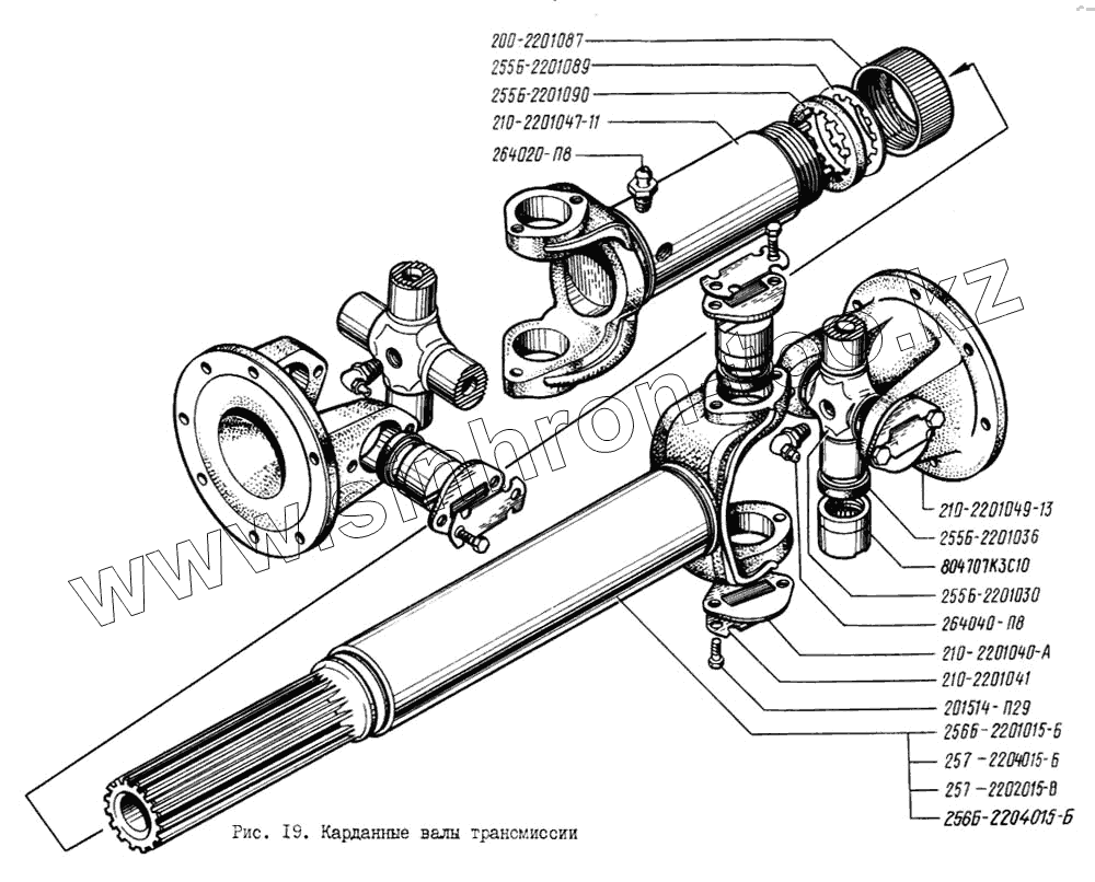 Каталог запасных частей к технике: КрАЗ-256. Карданные валы трансмиссии
