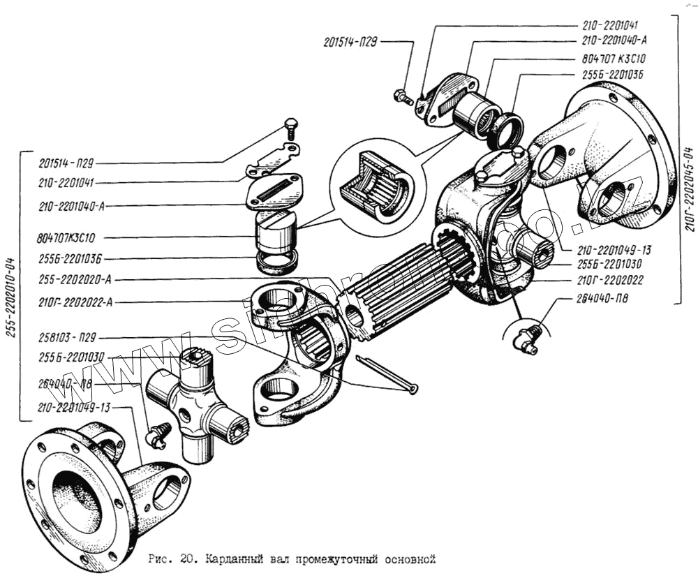Каталог запасных частей к технике: КрАЗ-256. Карданный вал промежуточный основной