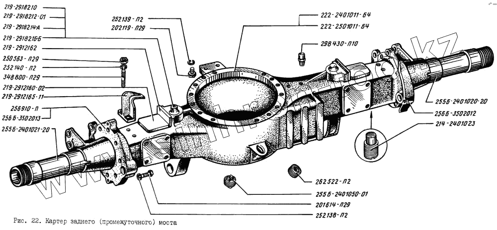 Каталог запасных частей к технике: КрАЗ-256. Картер заднего (промежуточного) моста