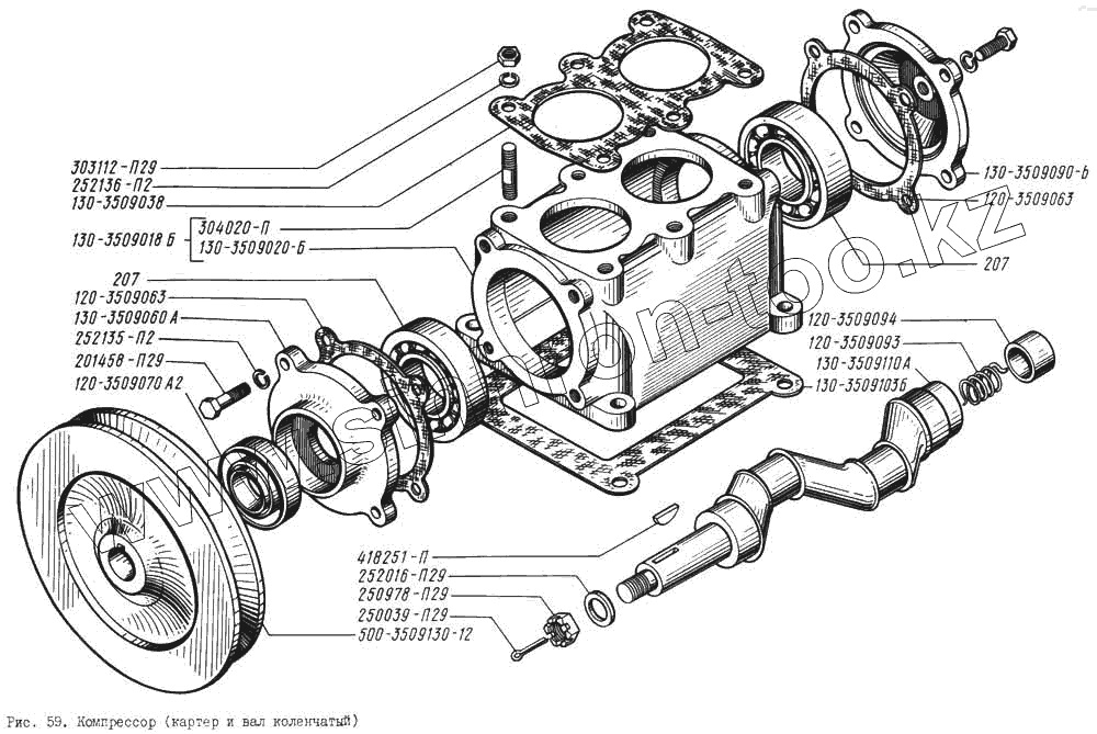 Каталог запасных частей к технике: КрАЗ-256. Компрессор (картер и вал коленчатый)