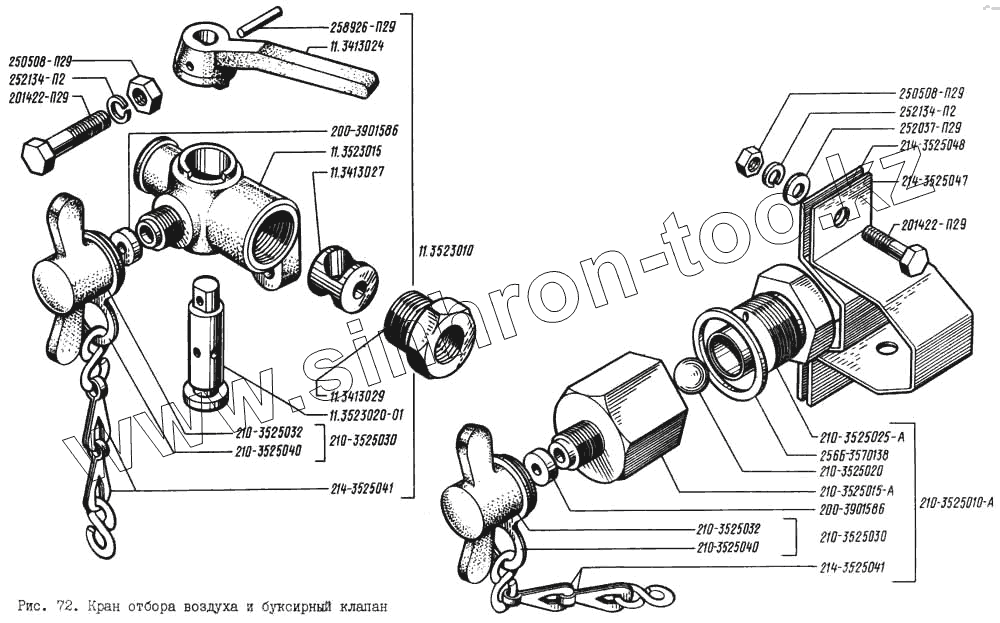 Каталог запасных частей к технике: КрАЗ-256. Кран отбора воздуха и буксирный клапан