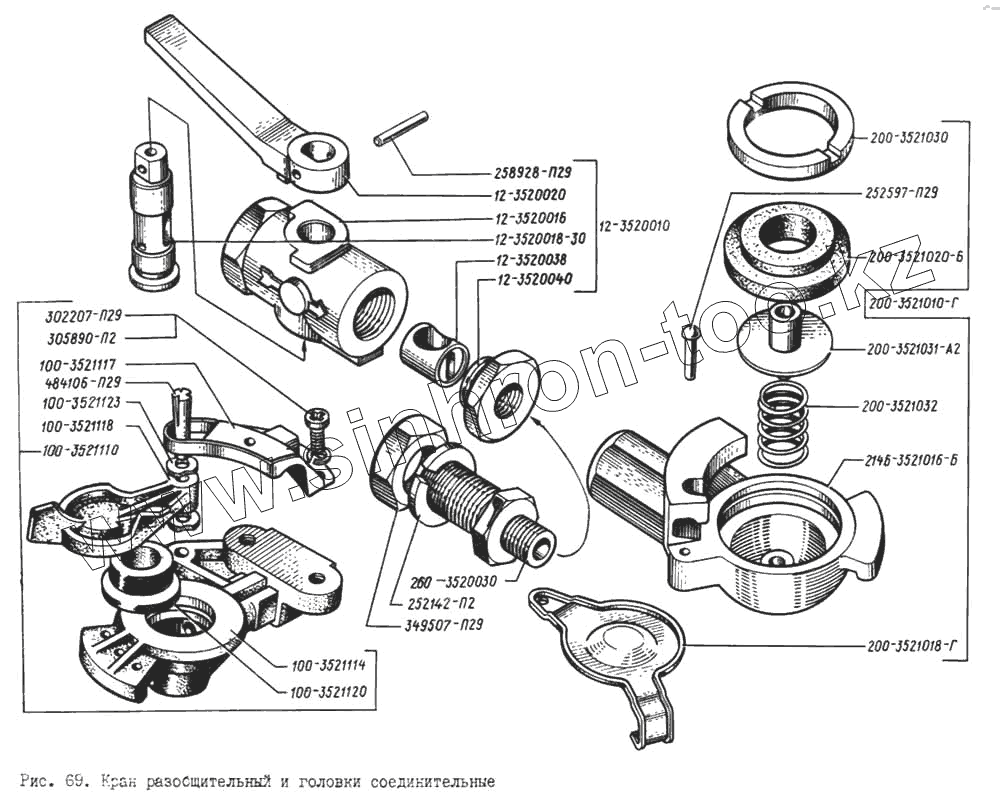 Каталог запасных частей к технике: КрАЗ-256. Кран разобщительный и головки соединительные