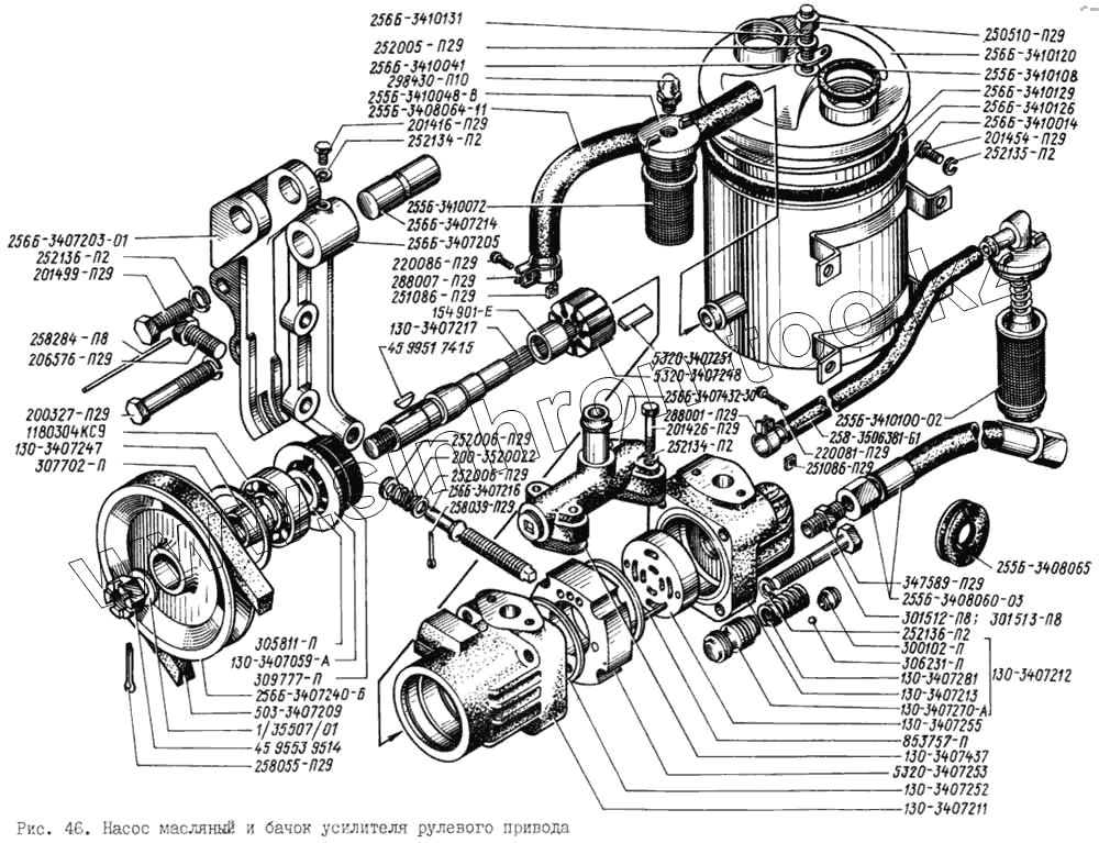 Каталог запасных частей к технике: КрАЗ-256. Насос масляный и бачок усилителя рулевого привода