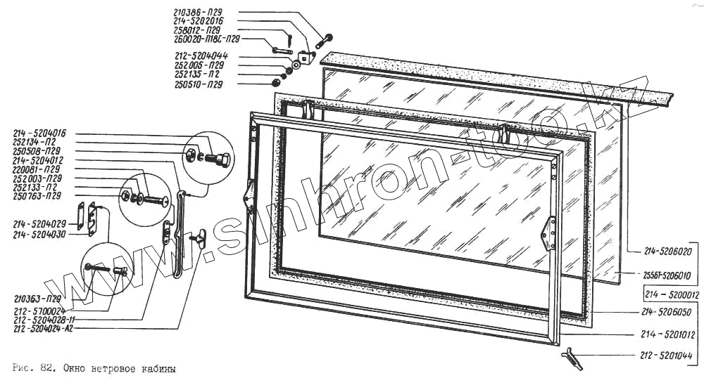 Каталог запасных частей к технике: КрАЗ-256. Окно ветровое кабины