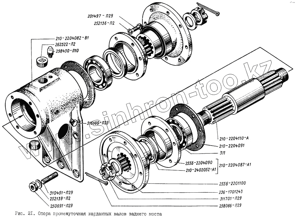 Каталог запасных частей к технике: КрАЗ-256. Опора промежуточная карданных валов заднего моста