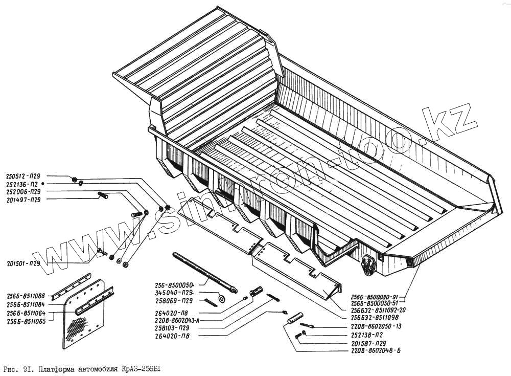 Каталог запасных частей к технике: КрАЗ-256. Платформа автомобиля КрАЗ-256Б1