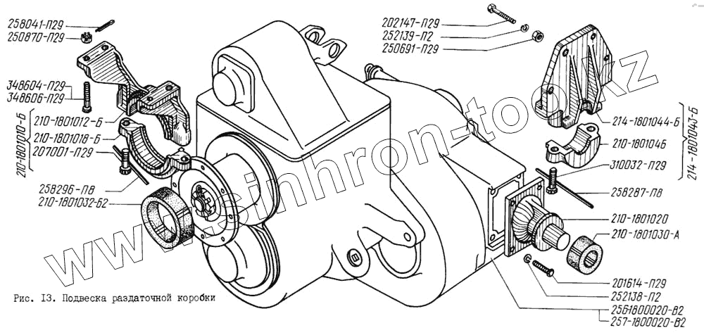 Каталог запасных частей к технике: КрАЗ-256. Подвеска раздаточной коробки