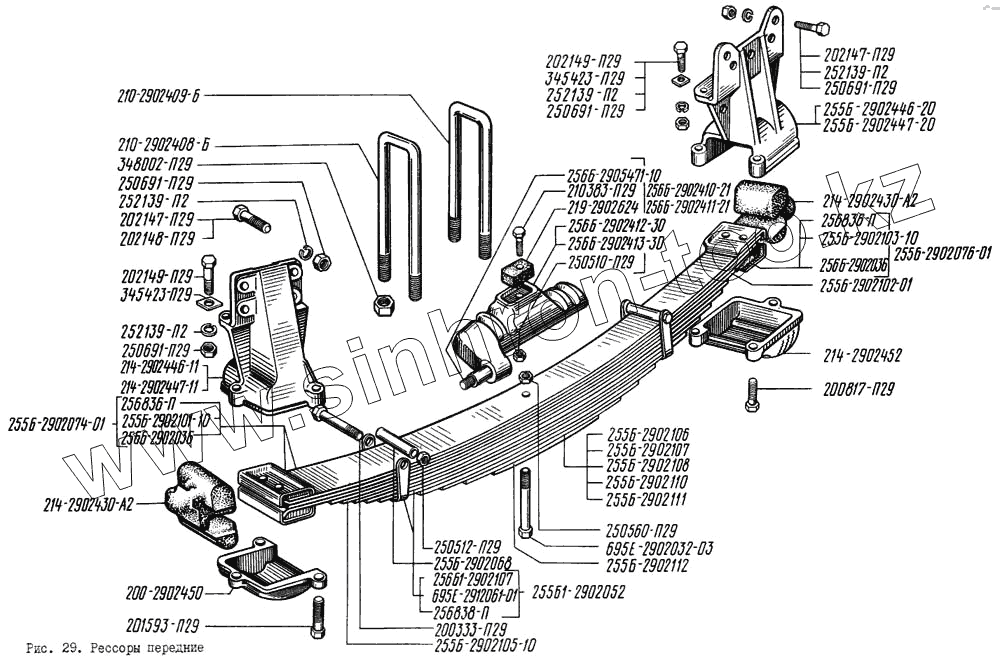 Каталог запасных частей к технике: КрАЗ-256. Рессоры передние