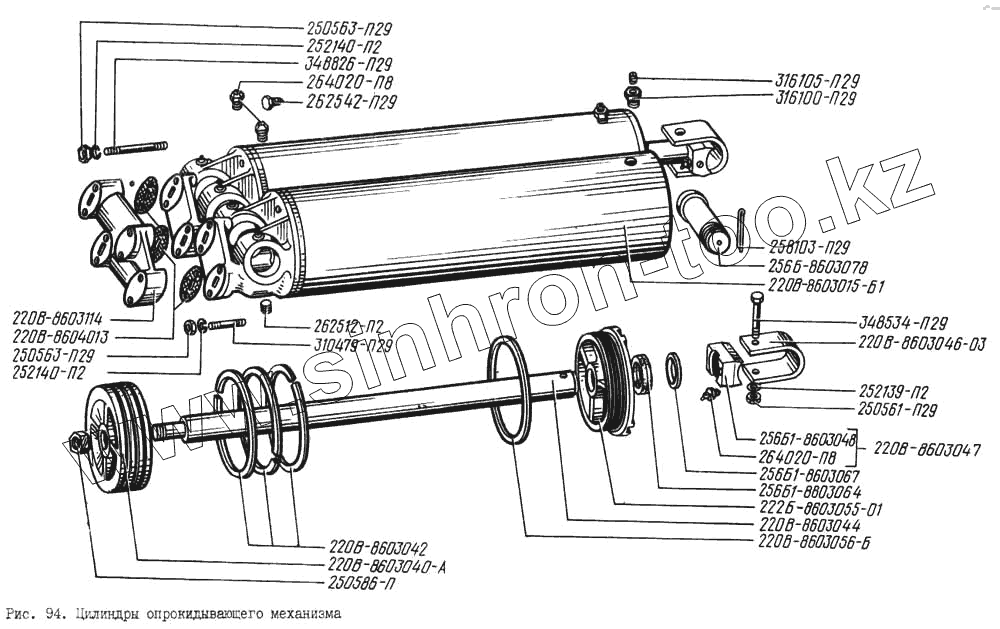 Каталог запасных частей к технике: КрАЗ-256. Цилиндры опрокидывающего механизма