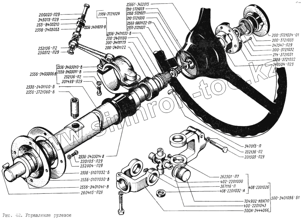 Каталог запасных частей к технике: КрАЗ-256. Управление рулевое