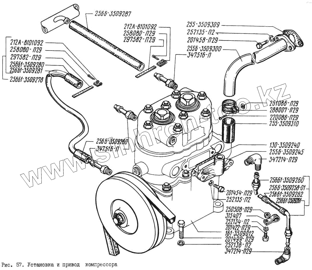 Каталог запасных частей к технике: КрАЗ-256. Установка и привод компрессора