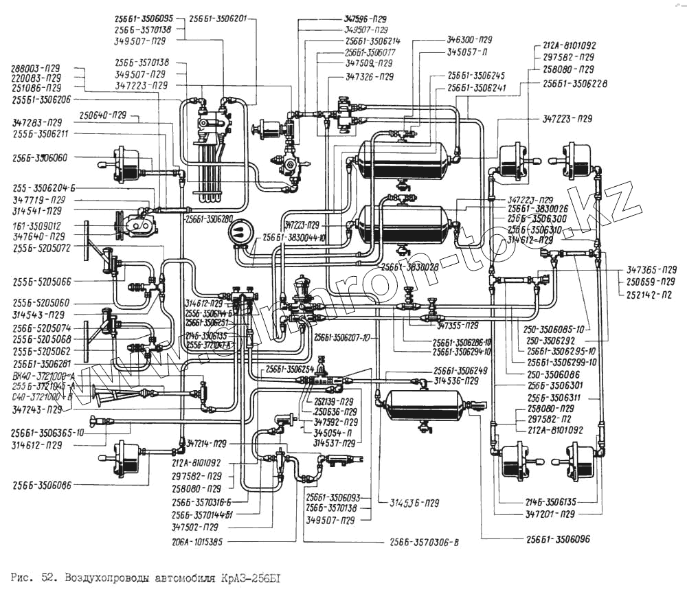 Каталог запасных частей к технике: КрАЗ-256. Воздухопроводы автомобиля КрАЗ-256Б1