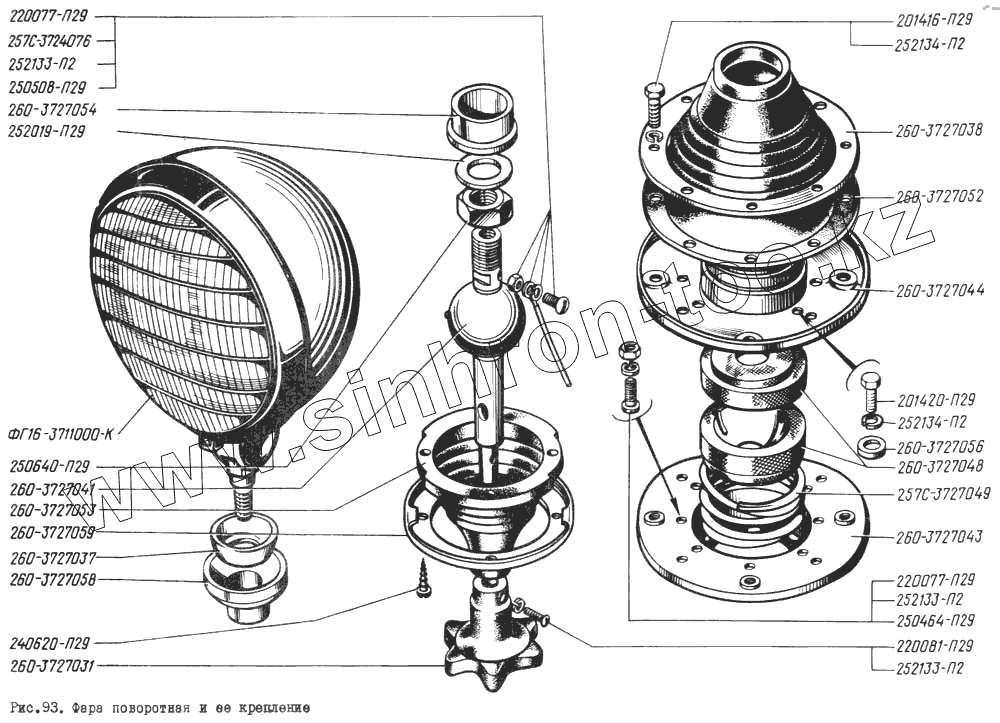 Каталог запасных частей к технике: КрАЗ-260. Фара поворотная и ее крепление