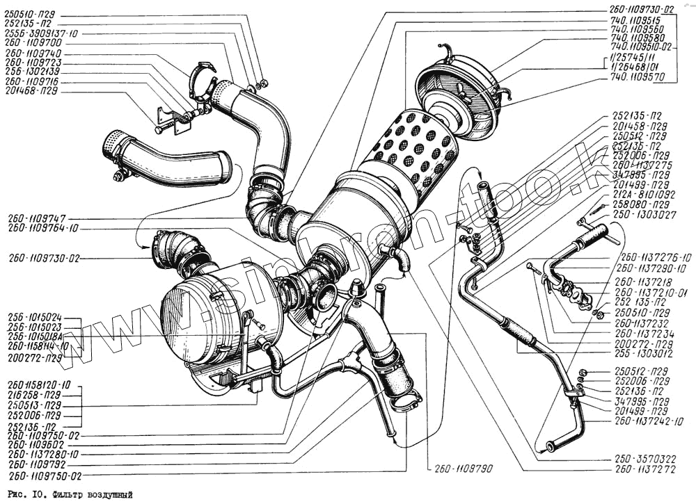Каталог запасных частей к технике: КрАЗ-260. Фильтр воздушный