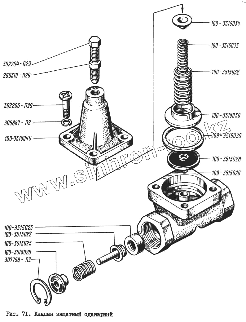 Каталог запасных частей к технике: КрАЗ-260. Клапан защитный одинарный