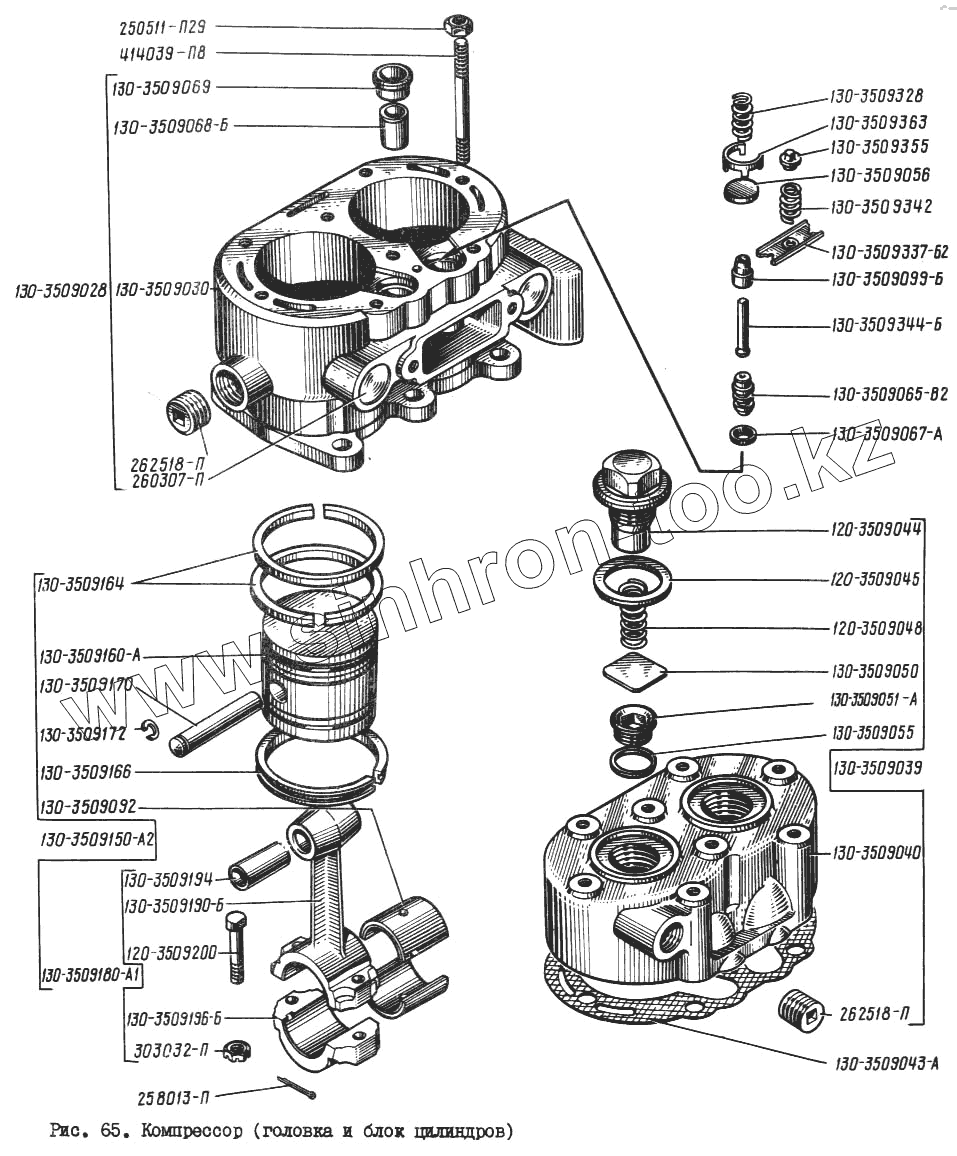 Каталог запасных частей к технике: КрАЗ-260. Компрессор (головка и блок цилиндров)