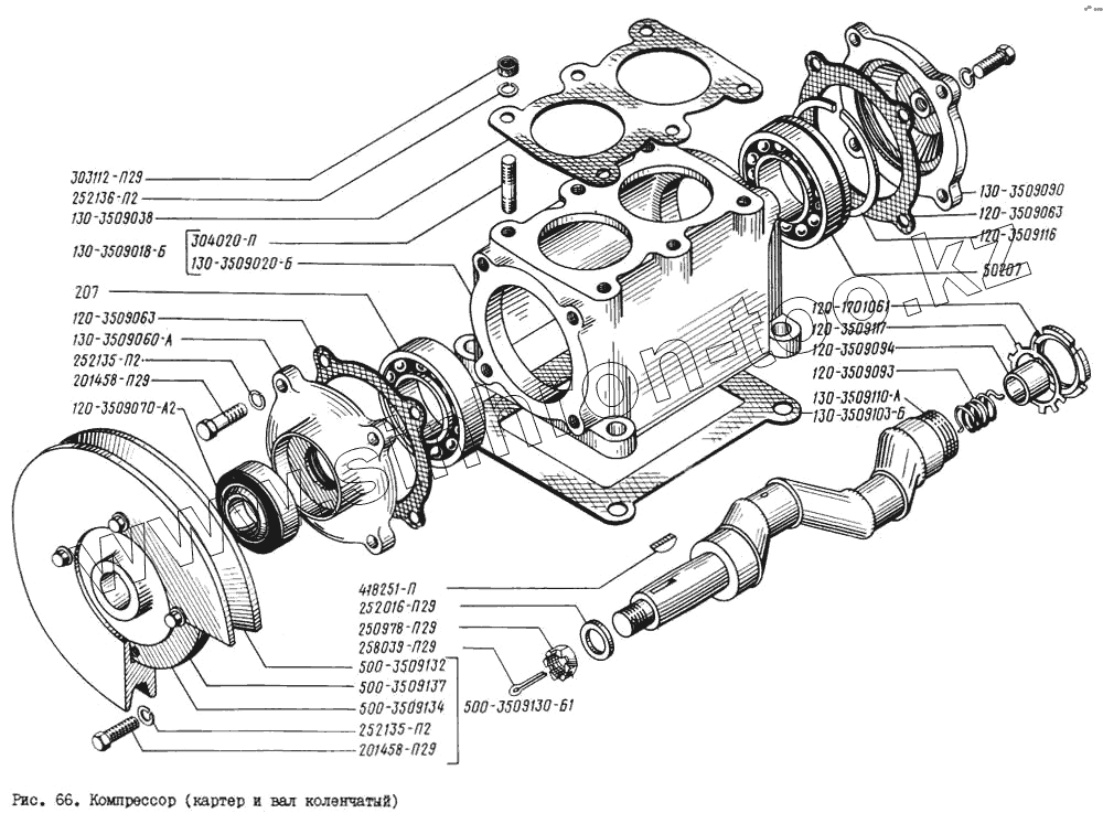 Каталог запасных частей к технике: КрАЗ-260. Компрессор (картер и вал коленчатый)