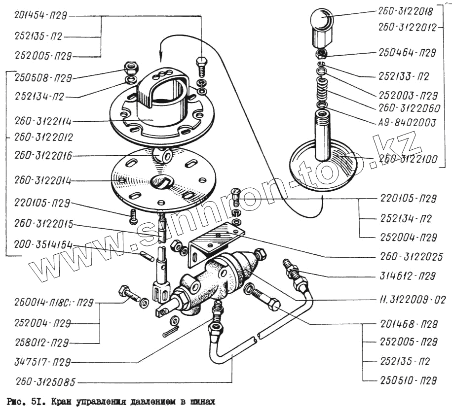 Каталог запасных частей к технике: КрАЗ-260. Кран управления давлением в шинах