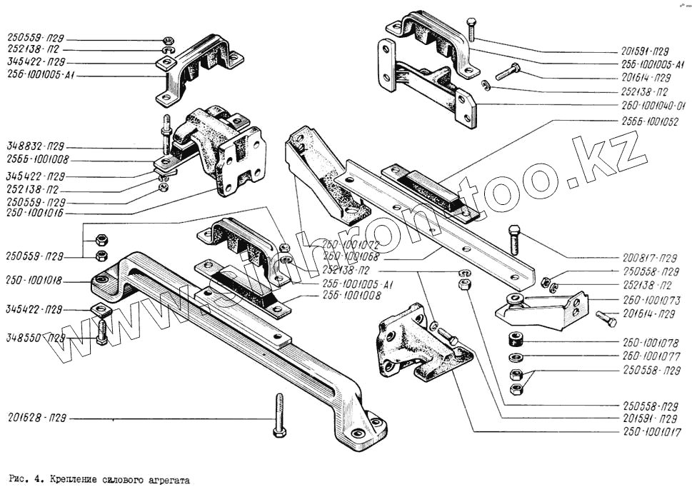 Каталог запасных частей к технике: КрАЗ-260. Крепление силового агрегата