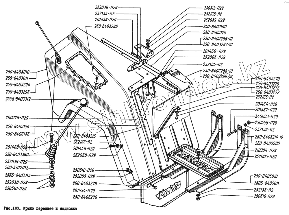 Каталог запасных частей к технике: КрАЗ-260. Крыло переднее и подножка