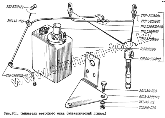 Каталог запасных частей к технике: КрАЗ-260. Омыватель ветрового окна (электрический привод)